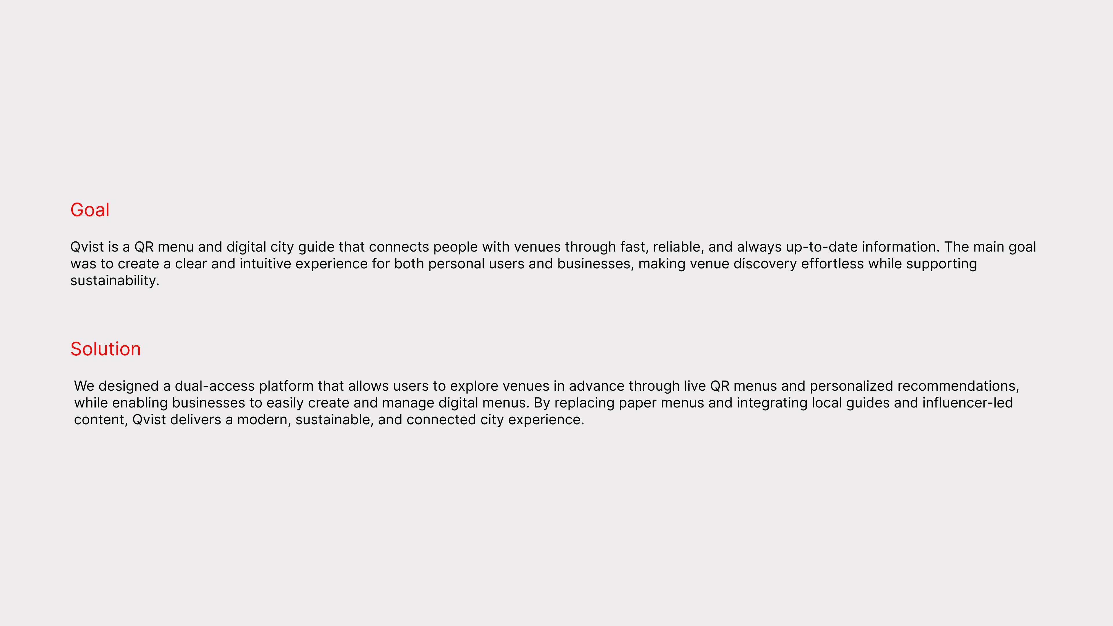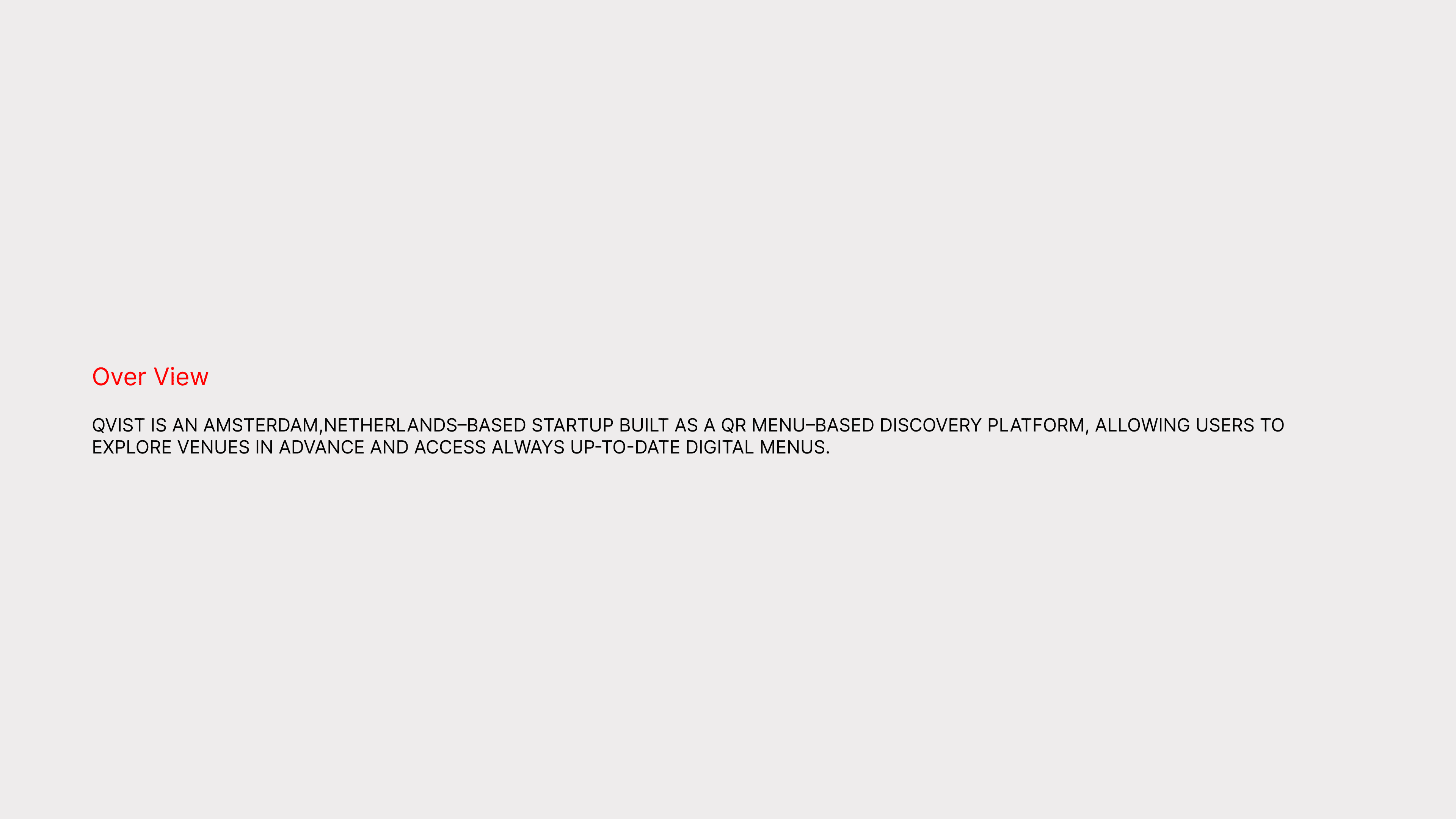 Qvist is a sustainability-focused digital menu and discovery platform based in Amsterdam. Designed for both users and businesses, it bridges the gap between digital innovation and conscious consumption. The app allows users to explore local venues through interactive QR menus, while helping businesses reduce waste and enhance their digital presence. My focus was on creating a seamless experience with a clean, modern interface that reflects Qvist’s eco-conscious identity.